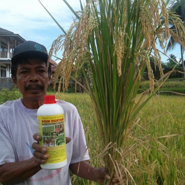 4. Poin Dua Tani : Ramuan bahan alami, dari rempah-rempah dan nabati, dan tumbuh-tumbuhan lainnya yang berbentuk enzim. Berkadar protein dan vitamin sehingga menghasilkan fitohormon/zat pengatur tumbuh, dan mudah larut dengan air, dengan ekstra cepat mudah terserap oleh tanaman.